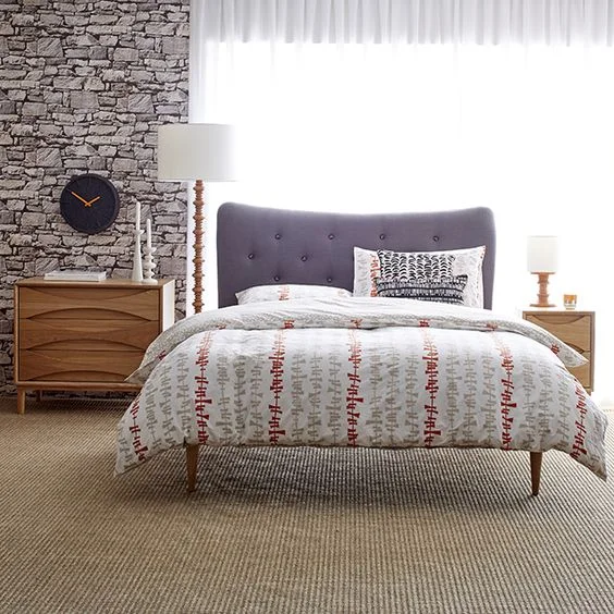 Arne Vodder brought a unique look to mid-century furniture with pieces that had drawers shaped to avoid the need for handles.  If you can’t find an original “bowtie” nightstand, we found 3, at high/low prices,  that have a similar look like the one in this photo.